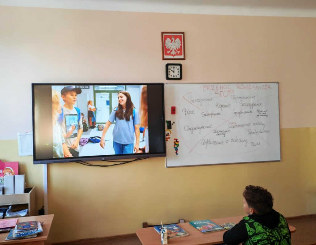 W klasie 3B przeprowadzono lekcję na temat przemocy rówieśniczej i jej przeciwdziałaniu. Uczniowie aktywnie uczestniczyli w zajęciach, dzielili się swoimi spostrzeżeniami i doświadczeniami.