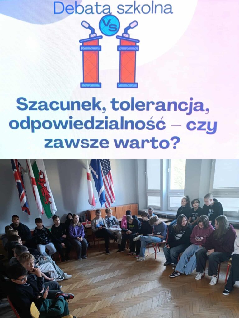 Uczniowie 7A i 7B zmierzyli się w dyskusji na ważne, czasem trudne tematy – od szacunku i tolerancji, przez rolę szkoły, aż po wpływ mediów społecznościowych.