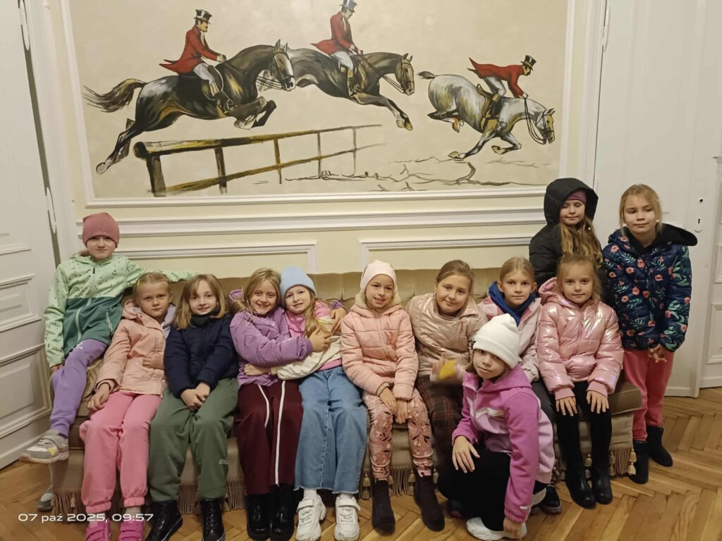 Na początku zwiedzaliśmy stajnię i oglądaliśmy konie. Dowiedzieliśmy się, czym one się żywią i jak trzeba o nie dbać. Niektóre mogliśmy nawet nakarmić. Potem czekała na nas świetna atrakcja – przejażdżka bryczką!