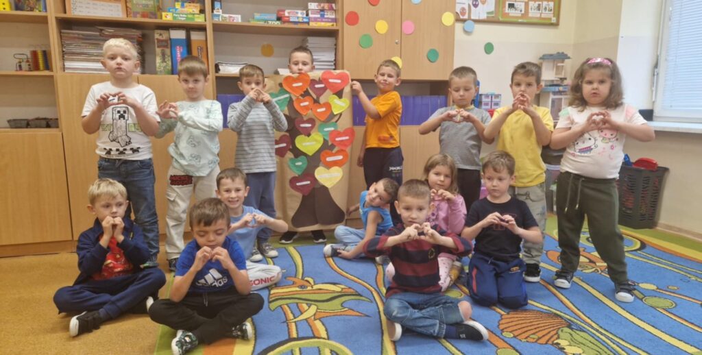 Podczas zajęć sześciolatki rozmawiały o tym, czym jest przyjaźń i jak można być dobrym kolegą lub koleżanką. Dzieci uczestniczyły w zabawach integracyjnych, wspólnie tworzyły plakaty i uczyły się, jak pomagać sobie nawzajem. Wspólne działania pozwoliły dzieciom lepiej się poznać, zrozumieć, jak ważne są dobre relacje w grupie oraz utrwaliły zasady zgodnej zabawy i współpracy.