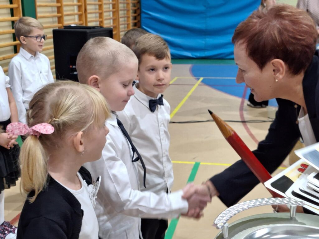 Najważniejszym momentem wydarzenia było uroczyste pasowanie na ucznia- symbolicznym dużym, czerwonym ołówkiem. Aktu pasowania dokonali kolejno zaproszeni goście oraz dyrektor Elżbieta Wilczyńska.