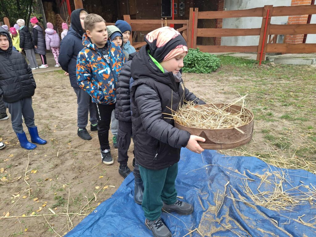 Klasy 2b i 3a kolejny raz zawitały do Zagrody Edukacyjnej „Stajnia Lusi” w Konarzewie. Tym razem dzieci zapoznały się z procesem powstawania chleba. Każdy mógł sam doświadczyć jak wygląda praca rolnika – młócenie zboża, mielenie na mąkę w żarnach, wysiew i bronowanie. Wysiłek został uwieńczony samodzielnym wypiekaniem chleba w tradycyjnym piecu. Jak zawsze w Konarzewie, zabawa była wspaniała!