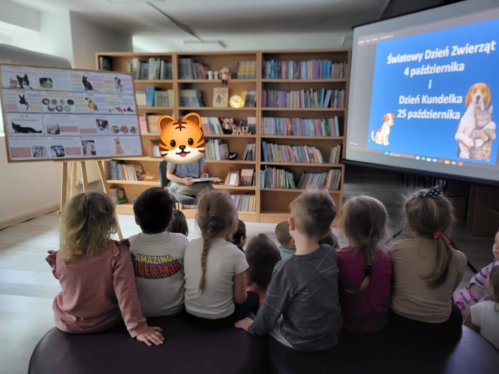 W dniach 7-8 i 10 października 2025 r. odbyły się spotkania biblioteczne dla klas 0–III poświęcone naszym zwierzęcym przyjaciołom. Starsze koleżanki z klas 5a i 6a czytały młodszym wzruszające opowiadanie „Reks” z książki „Najwierniejsi przyjaciele. Niezwykłe psie historie” autorstwa R. Piątkowskiej. Wszyscy uczniowie poznali najpopularniejsze zwierzątka domowe – psy, koty, króliki, papugi i rybki. Podczas spotkań rozmawialiśmy o opiece nad zwierzętami i o tym, jak możemy pomagać podopiecznym schronisk. To były pełne ciepła i empatii zajęcia, które przypomniały nam, jak ważna jest troska o naszych mniejszych przyjaciół.
