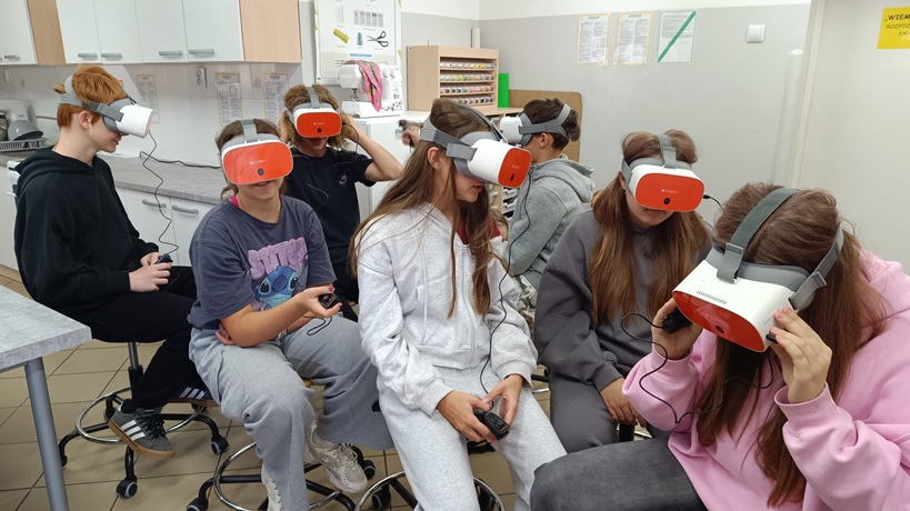 22 października klasa 7a odbyła lekcję w pracowni „Laboratoria przyszłości”. Uczniowie mieli okazję poznać działanie gogli VR. Przenieśli się do wirtualnej rzeczywistości. Lekko przesunięte obrazy dla każdego oka tworzyły efekt 3D, a czujniki ruchu śledzące obrót głowy, zapewniły wrażenie zanurzenia w świecie Kosmosu oraz oceanu. Uczniowie klasy 7a wraz z wychowawczynią dziękują pani Monice Grałek za pokazanie działania gogli VR oraz świetną zabawę.