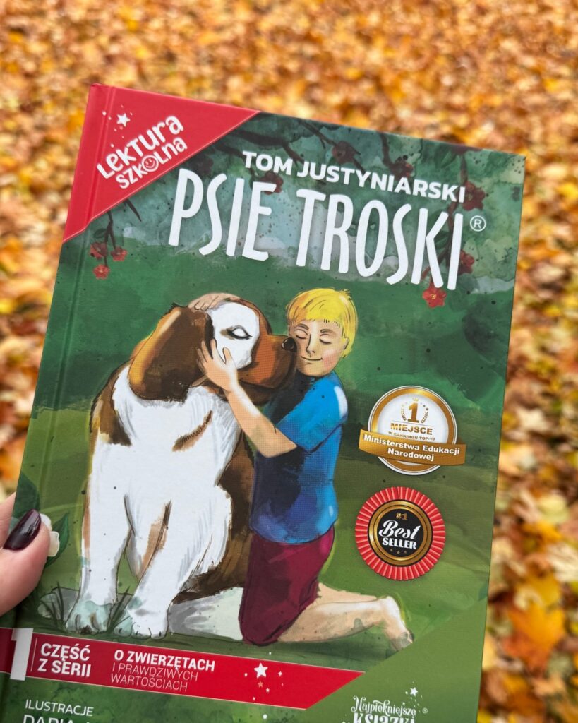 Zeszyt Przygód i Mądrości to wyjątkowy dodatek do lektury „Psie Troski” Toma Justyniarskiego, który łączy naukę z zabawą. Zawiera fragmenty pamiętnika Adasia, kolorowanki, zagadki i quizy nawiązujące do treści książki. Po zeskanowaniu kodu QR można odsłuchać historie czytane przez Adasia oraz usłyszeć, jak powstały „Psie Troski” w opowieści samego autora. W środku znajdziesz także Przykazania Zwierząt i Certyfikat Przyjaciela Zwierząt – idealne narzędzie do budowania empatii i odpowiedzialności u dzieci. Do zeszytu dołączony jest scenariusz zajęć z Lekcji Miłości do Zwierząt i Przyrody – gotowe materiały dla nauczycieli.