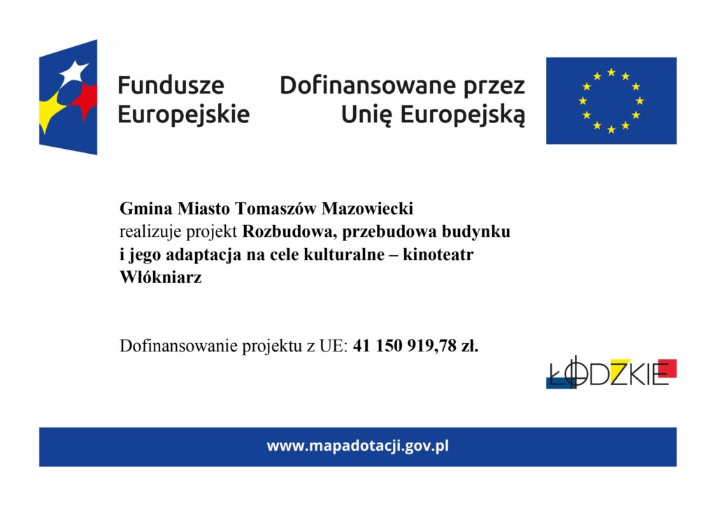 Gmina Miasto Tomaszów Mazowiecki uzyskała dotację z Unii Europejskiej na realizację projektu pn.: „Rozbudowa, przebudowa budynku i jego adaptacja na cele kulturalne – kinoteatr Włókniarz”.