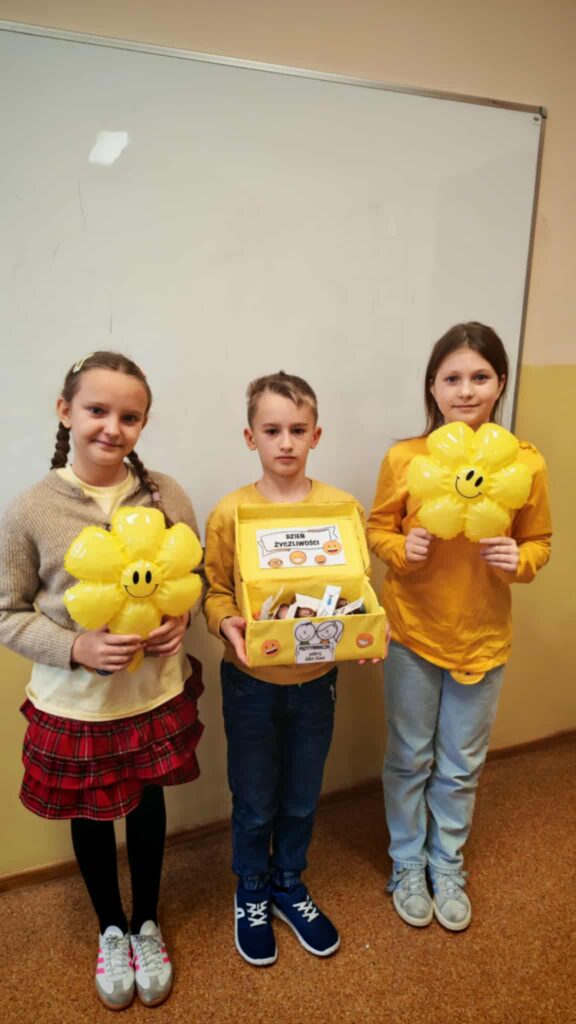 Wielu uczniów i nauczycieli założyło ubrania w żółtym kolorze, symbolu słońca, radości i optymizmu. Na korytarzu wyrosło „Drzewo Życzliwości”, na którym każdy mógł zawiesić swoją pozytywną myśl lub miłe słowo. Gazetki szkolne błyszczały inspirującymi cytatami o dobroci i empatii. Duże emocje wywoływało rozdawanie karteczek z pozytywnymi informacjami! Kto by się spodziewał, że małe „Jesteś super!” może tak poprawić humor?
