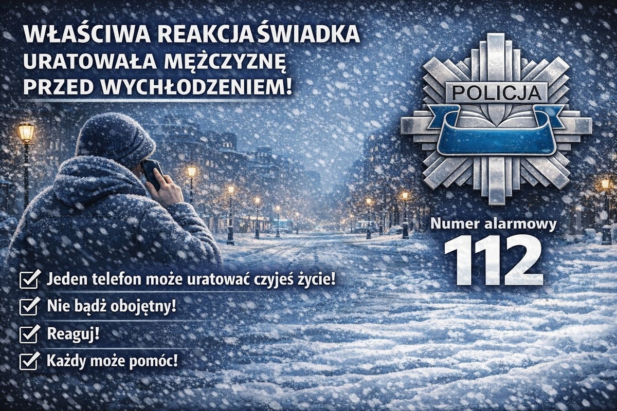 14 stycznia 2025 roku, kilka minut przed godziną 20:00, do dyżurnego tomaszowskiej komendy policji zadzwoniła kobieta informując, że na chodniku przy ulicy Tkackiej leży mężczyzna. Funkcjonariusze natychmiast pojechali we wskazane miejsce. Okazało się, że mężczyzna znajdował się pod wpływem alkoholu i był zziębnięty. W związku z panującą aurą, a co za tym idzie zagrożeniem życia i zdrowia 44 – latka, policjanci pomogli mu przejść do radiowozu a następnie przewieźli na komendę.