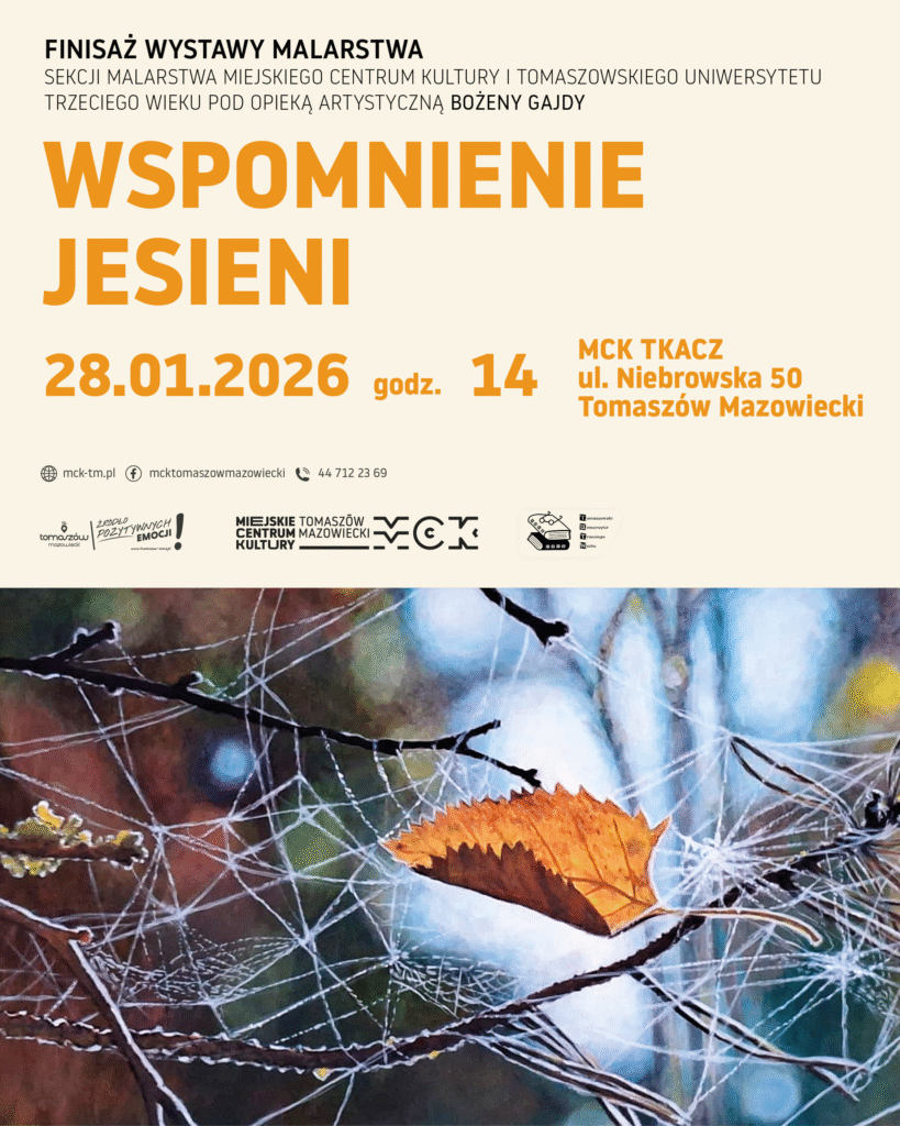 Ekspozycja powstała w ramach sekcji malarstwa Miejskiego Centrum Kultury oraz Tomaszowskiego Uniwersytetu Trzeciego Wieku, pod opieką artystyczną Bożeny Gajdy. To doskonała okazja, by jeszcze raz zachwycić się jesiennymi krajobrazami i w pełni zanurzyć w ich nastroju.