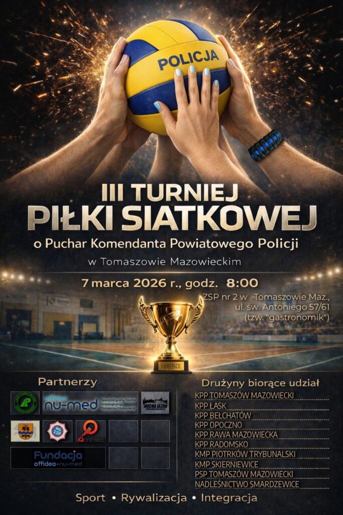 Już 7 marca 2026 r. o godz. 8:00 w hali sportowej ZSP nr 2 w Tomaszowie Mazowieckim (tzw. „gastronomik”, ul. św. Antoniego 57/61) odbędzie się: