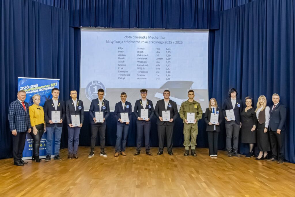 Tradycyjnie nagrodziliśmy uczniów, którzy osiągnęli najwyższe wyniki w nauce i znaleźli się w Złotej Dziesiątce Mechanika, tych którzy osiągnęli 100% frekwencji na zajęciach, a także klasy z najwyższą średnią ocen i najwyższą frekwencją w szkole. Rozdaliśmy również medale za osiągnięcia sportowe oraz nagrodziliśmy laureatów szkolnego etapu ogólnopolskiej olimpiady wiedzy o Zakładzie Ubezpieczeń Społecznych.