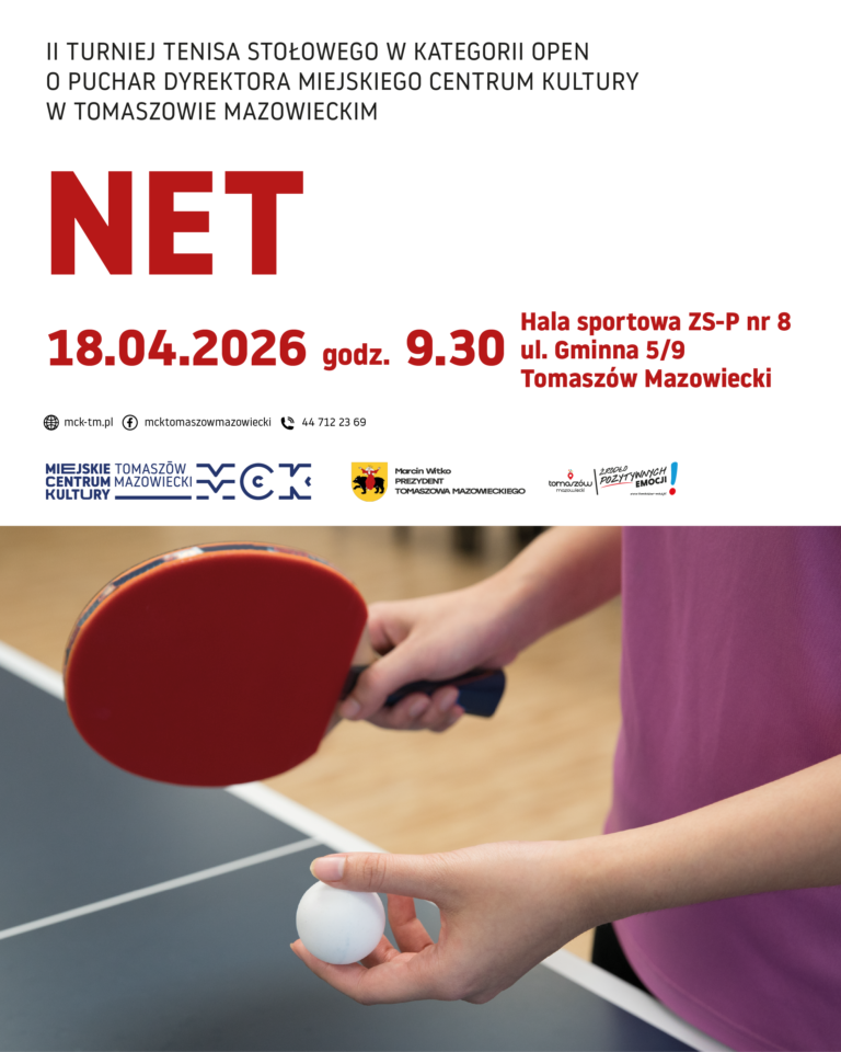 Już 18 kwietnia (sobota) o godz. 9:30 w hali sportowej ZS-P nr 8 przy ul. Gminnej 5/9 w Tomaszowie Mazowieckim spotkają się miłośnicy tenisa stołowego, by stanąć do rywalizacji w II Turnieju Tenisa Stołowego NET o Puchar Dyrektora Miejskiego Centrum Kultury w Tomaszowie Mazowieckim.