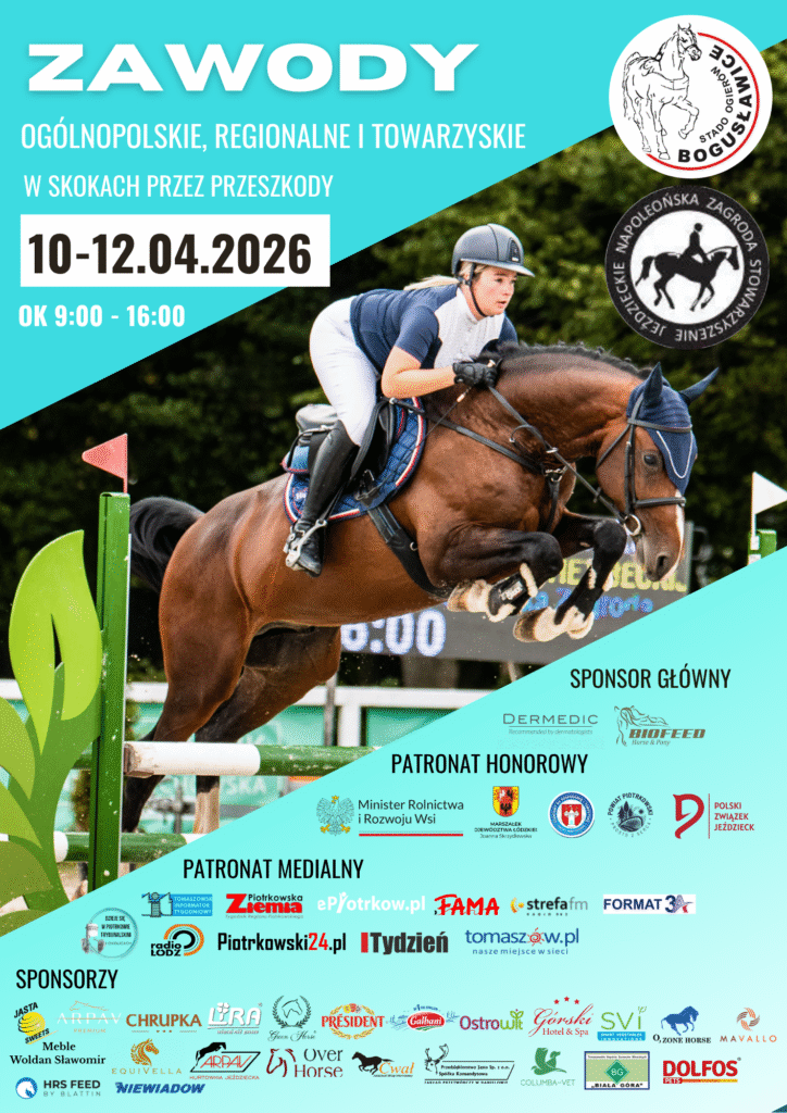 W dniach 10-12 kwietnia 2026 roku ośrodek jeździecki w Bogusławicach ponownie stanie się areną sportowych emocji, rodzinnych spotkań i wyjątkowych atrakcji. To właśnie wtedy odbędzie się Otwarcie Letniego Sezonu Jeździeckiego 2026, połączone z Ogólnopolskimi, Regionalnymi i Towarzyskimi Zawodami w Skokach przez Przeszkody.