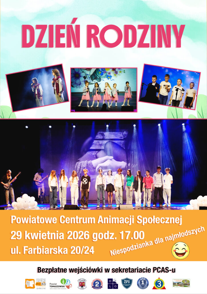 – Dzień Rodziny już po raz kolejny odbędzie się w naszej placówce. Zapraszamy całe rodziny do wspólnej zabawy. Na scenie zaprezentują się młodzi utalentowani artyści z tomaszowskich szkół ponadpodstawowych, Specjalnego Ośrodka Szkolno-Wychowawczego oraz PCAS-u, którzy przygotowali przepiękny program artystyczny. Będzie to okazja, aby spędzić ten czas w gronie najbliższych i jednocześnie docenić ich obecność w naszym życiu. Zapraszam Państwa po bezpłatne wejściówki na to wyjątkowe wydarzenie – mówi Dorota Ignasiak, dyrektor PCAS-u.