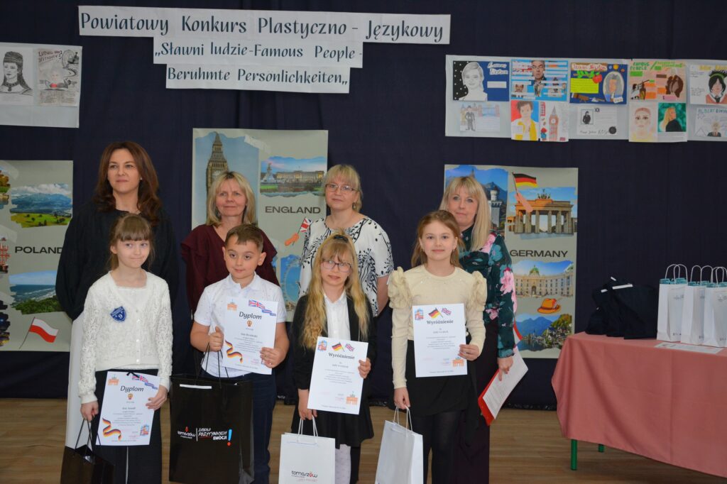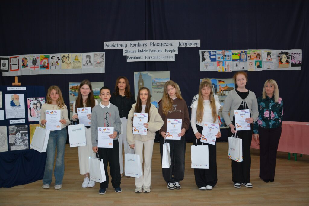 W poniedziałek, 20 kwietnia, o godzinie 9.30 w Szkole Podstawowej nr 3 im. Józefa Piłsudskiego w Tomaszowie Mazowieckim odbyło się uroczyste podsumowanie powiatowego konkursu plastyczno-językowego pod inspirującym hasłem „Sławni ludzie. Konkurs został zorganizowany pod honorowym patronatem Prezydenta Miasta Tomaszowa Mazowieckiego, pana Marcina Witko. Uroczystość zgromadziła uczniów, nauczycieli oraz opiekunów z wielu szkół powiatu tomaszowskiego. Gości serdecznie powitała dyrektor szkoły, pani Lucyna Siudzińska, podkreślając w swoim wystąpieniu, jak ważne jest rozwijanie wśród młodych ludzi kreatywności, wrażliwości artystycznej oraz zainteresowania językami obcymi i postaciami, które swoją działalnością zapisały się w historii świata.Celem konkursu było nie tylko rozwijanie talentów plastycznych uczniów, ale również poszerzanie wiedzy o znanych osobowościach ze świata kultury, nauki, sportu czy historii. Uczestnicy przygotowali prace inspirowane sylwetkami wybitnych postaci, łącząc formę plastyczną z elementami językowymi.